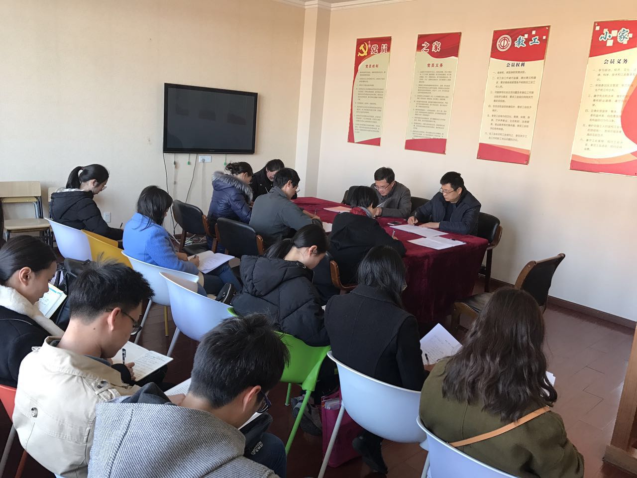 会议上,王书记向各位教工党员提出,老师们要在教学和科研工作中,认真领会夏宝龙书记强调的教师要自觉践行“四有”、“四个引路人”、“四个相统一”的要求;努力成为先进思想文化的传播者,更好的担起学生健康成长指导者和引路人的责任。