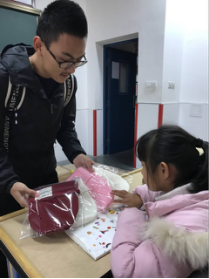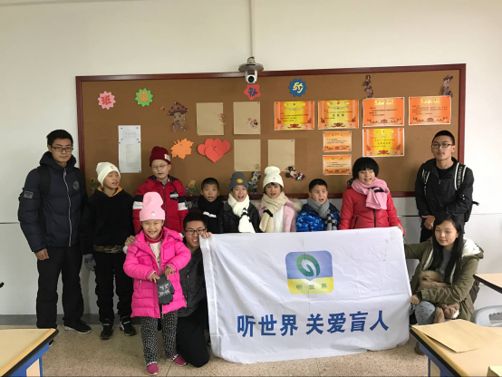 团队成员在特殊教育中心教学楼门口就到了特殊学校老师的欢迎,老师将志愿者们引领到盲二班 ,向小朋友们介绍“听世界”团队,并解释来意。在短暂的交流后,志愿者开始分发建工学院大学生们购买赠送的帽子、手套、围巾等礼物,并耐心地向孩子们描述礼物的颜色和花纹,孩子们也非常礼貌,拿到礼物后,第一句说的就是“谢谢”。