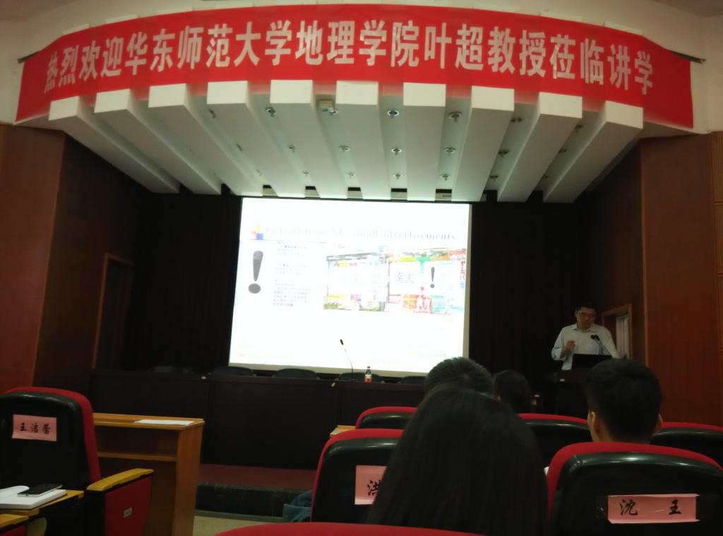 2016921日早上9:40, 叶超教授的学术报告准时在建工学院报告厅进行,会议由学院党委书记王益澄教授主持。叶超,华东师范大学地理科学学院教授,博士生导师。中国科学院地理科学与资源研究所人文地理学博士,北京大学城市与环境学院博士后。具有经济学和人文地理学的学科背景,从事城市化、马克思主义地理学、文化地理学和地理思想相关的教学研究工作。近年来,在《Nature》、《Habitat International》、《Journal of Cleaner Production》、地理学报等国内外著名期刊发表文章50多篇。