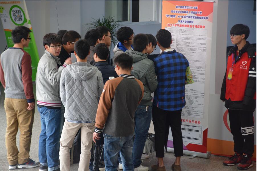 12月5日,宁波市建筑业专场招聘会在黄庆苗楼举行,本次专场招聘会共吸引了宁波市50家建筑业企业参加,提供了300余个岗位,招聘对象为宁波全市的大中专院校的应届毕业生,招聘岗位除土木工程、建筑类专业除外,还有财务、预算人员、行政人员等。