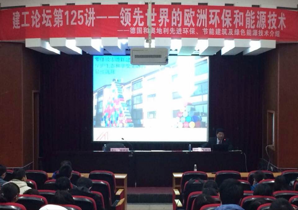讲座中,赵尚峰先生以领先世界的欧洲环保技术为主题,具体介绍了奥地利污泥焚烧技术及零排放建筑技术的相关内容,并指出要最大限度地利用建筑潜在的能源,这也势必将成为人类发展的必然趋势。之后,赵尚峰先生举出了奥地利部分新旧建筑的案例,用以佐证自己的观点。但同时,建筑行业也面临着重大调整和技术革命,赵尚峰先生寄希望于大家,并希望携手共同打造中国“零排放建筑”品牌。