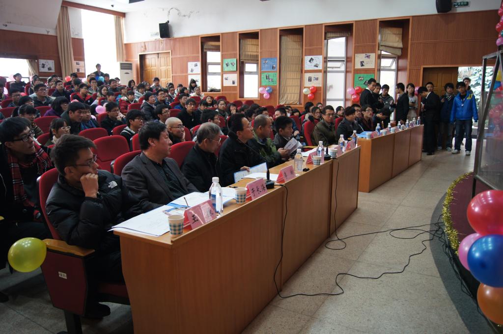 当天,报告厅被彩色气球环绕,墙壁周围有选手以及参赛作品的照片、简介和参赛宣言,现场气氛紧张而不失欢乐,严肃却不乏活泼。介绍完嘉宾和评委之后,大赛工作人员上台介绍比赛规则,并进行加载演示。评分由选手自述答辩、结构体系、美观与制作和加载性能四部分组成。竞赛的关键是加载试验,加载性能不仅取决于加载重量,还与结构本身自重有关。最终,经评委打分共产生一等奖3名,二等奖6名,三等奖9名。