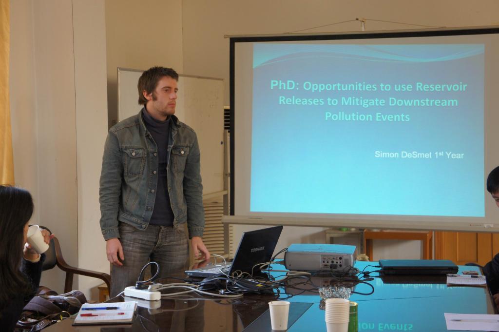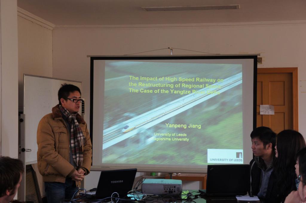 1212上午,英国利兹大学地理学院Yanpeng JIANGAndy NewingSimon DeSmet三位博士来国产探花 进行了学术交流访问,并和人文地理学专业09级、10级硕士研究生以“The impact of High Speed Railways on the restructuring of regional space:the case of the Yangtze River zone(高速铁路与区域空间重构) Estimating tourist demand in retail location models(零售业区位建模:基于旅游消费需求) Opportunities to use reservoir releases to mitigate downstream pollution events(流域污染事件评估窗口与流域环境治理)”三个主题进行了学术报告和研讨。人文地理团队负责人、城市科学系副主任李加林教授,冯革群副教授,马仁锋讲师,海运学院庄佩君教授等热情接待了利兹大学地理学院一行。