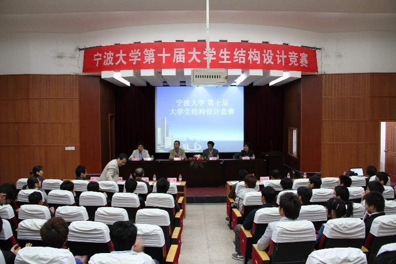 2011年4月16日上午,我校第十届大学生结构设计竞赛决赛在建筑工程与环境学院报告厅举行。竞赛组委会副主任、教务处副处长杜建科出席大赛开幕式并讲话,建工学院院长郑荣跃宣布比赛开始。评审专家组由郑荣跃教授、柳俊哲教授、李辉副教授、丁勇副教授、李俊华副教授,王万桢副教授以及设计院的李翔高级工程师担任。