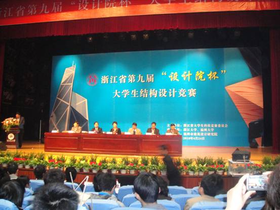 42324日,浙江省第九届设计院杯大学生结构设计竞赛在温州大学举行,来自浙江大学等35所高校的74支参赛队参加,由我校组织选拔的5支参赛队经过激烈角逐最后荣获一等奖1项、二等奖2项、三等奖1项。