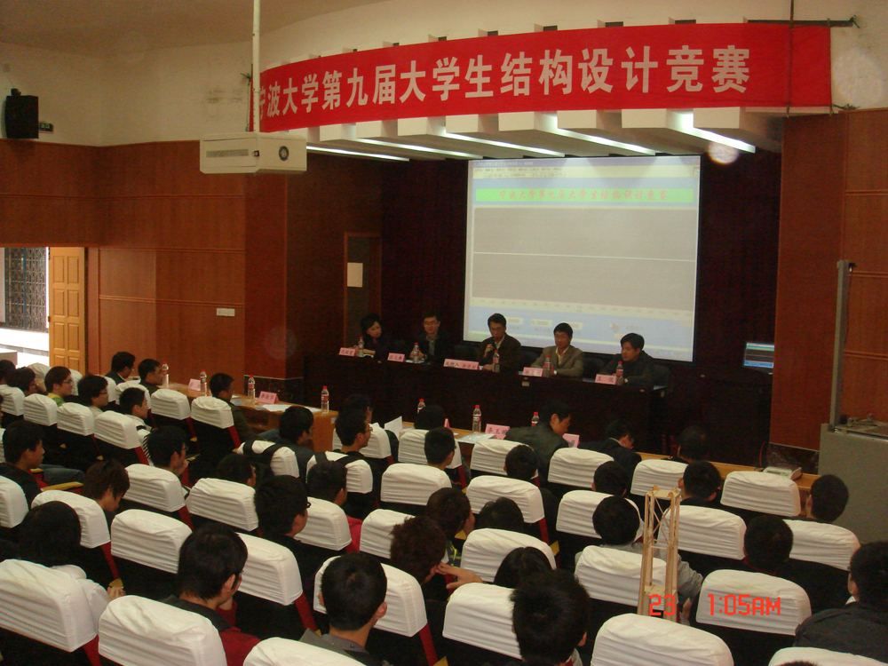 竞赛开幕式上,校团委副书记张义廉代表竞赛组委会致辞,他对本届大赛的举办表示祝贺,并简要总结了我校历届大学生结构设计竞赛的成绩,同时预祝大赛圆满成功。竞赛中,通过加载砝码和模拟地震的形式提供动力作用,来测试高层结构模型。专家组成员从方案设计、理论测试、模型制作、叙述答辩、加载试验5个方面的综合考评,最后从参赛的70件作品中评选产生了一等奖3名,二等奖6名,三等奖17名,并推荐其中部分作品参加今年4月下旬在温州大学举行的浙江省第九届“设计院杯”大学生结构设计竞赛。