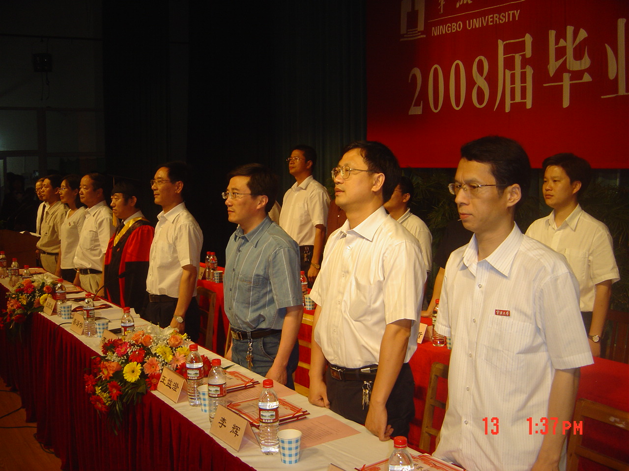 典礼仪式上还公布了获得2008届省级、校级优秀毕业生名单、学院考研金牌班级名单及考研优秀奖学金获得者名单。主席台就座领导为相关获奖集体和个人颁奖。毕业生代表孔铭钟同学代表全体毕业生在典礼上作了发言,毕业班代表向学院赠送了纪念品,祝愿母校办学事业蒸蒸日上。最后,学院主持工作副院长张殿发为全体毕业生授予学位、颁发毕业证书并与毕业生们一一合影留念。