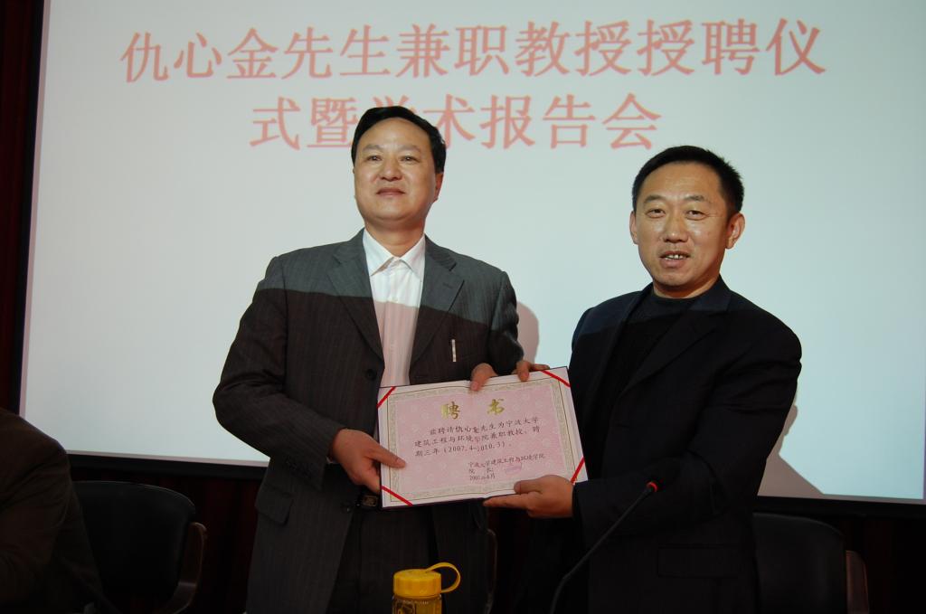 4月4日下午,民营企业家、宁波大自然新型墙材有限公司董事长兼总经理仇心金先生兼职教授授聘仪式暨个人报告会在国产探花