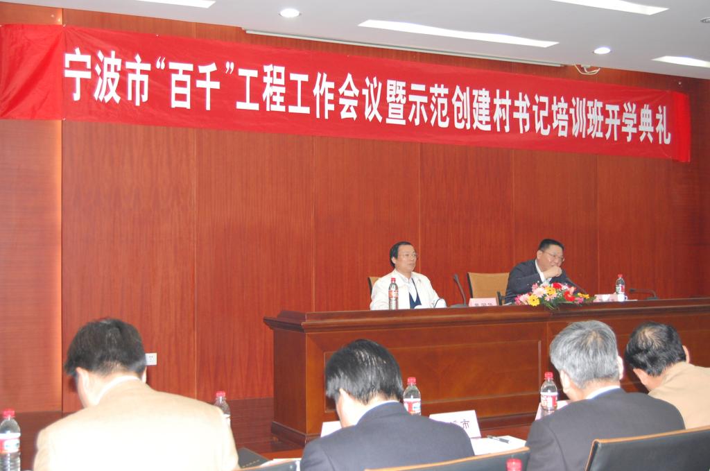 4月11日上午,宁波市“百千”工程工作会议暨重点创建示范村书记培训开学典礼在我校留学生公寓4F报告厅举行。参加典礼的有各县(市)区委或政府分管领导、“百千”办主任或副主任、宁波市新农村建设研究中心主任、07年度重点创建示范村书记,市“百千”工程协调小组相关成员单位负责人120名,市政府陈炳水副市长出席会并作重要讲话。