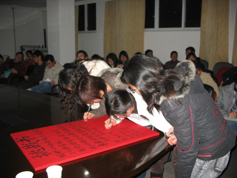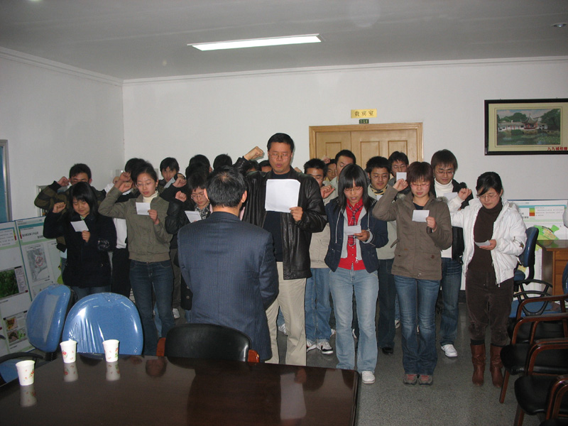 会上,邹教授对本行业当前就业形势作了分析,他提出本班同学一年后将面临毕业,如何在这关健的一年里抓紧时间规划自我,调整努力方向及步伐显得极为重要。他要求本班同学能正确定位自己,充分做好考研、考公务员及直接工作的准备,为自己的大学生涯划上圆满的句号。之后,邹教授带领全班同学作了宣誓,激励同学们勇往直前,决不放弃。