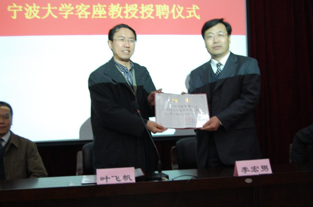 316日下午,我校在建工学院报告厅举行客座教授授聘仪式,、大连理工大学李宏男教授,清华大学博士生导师韩林海教授受聘为我校客座教授,副校长叶飞帆教授为两位教授颁发了客座教授聘书及佩戴校徽。