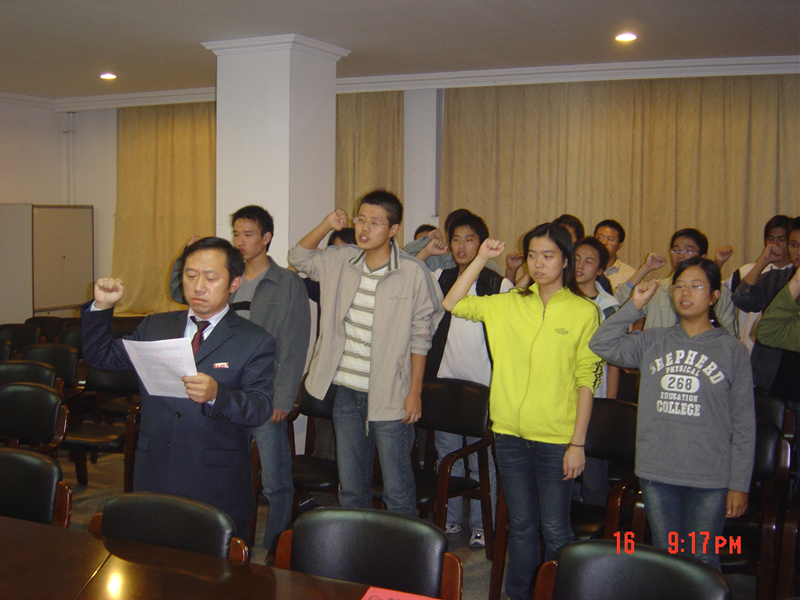城管03班本着互相学习、共同提高的原则,向强化03班提出考研挑战,挑战内容如下:考研报名率要达100%,考取率55%以上。会上,班主任张殿发教授带领全班同学宣读了誓言,全体同学精神振奋,表示要在大学的最后两年里努力学习,立志考取研究生。