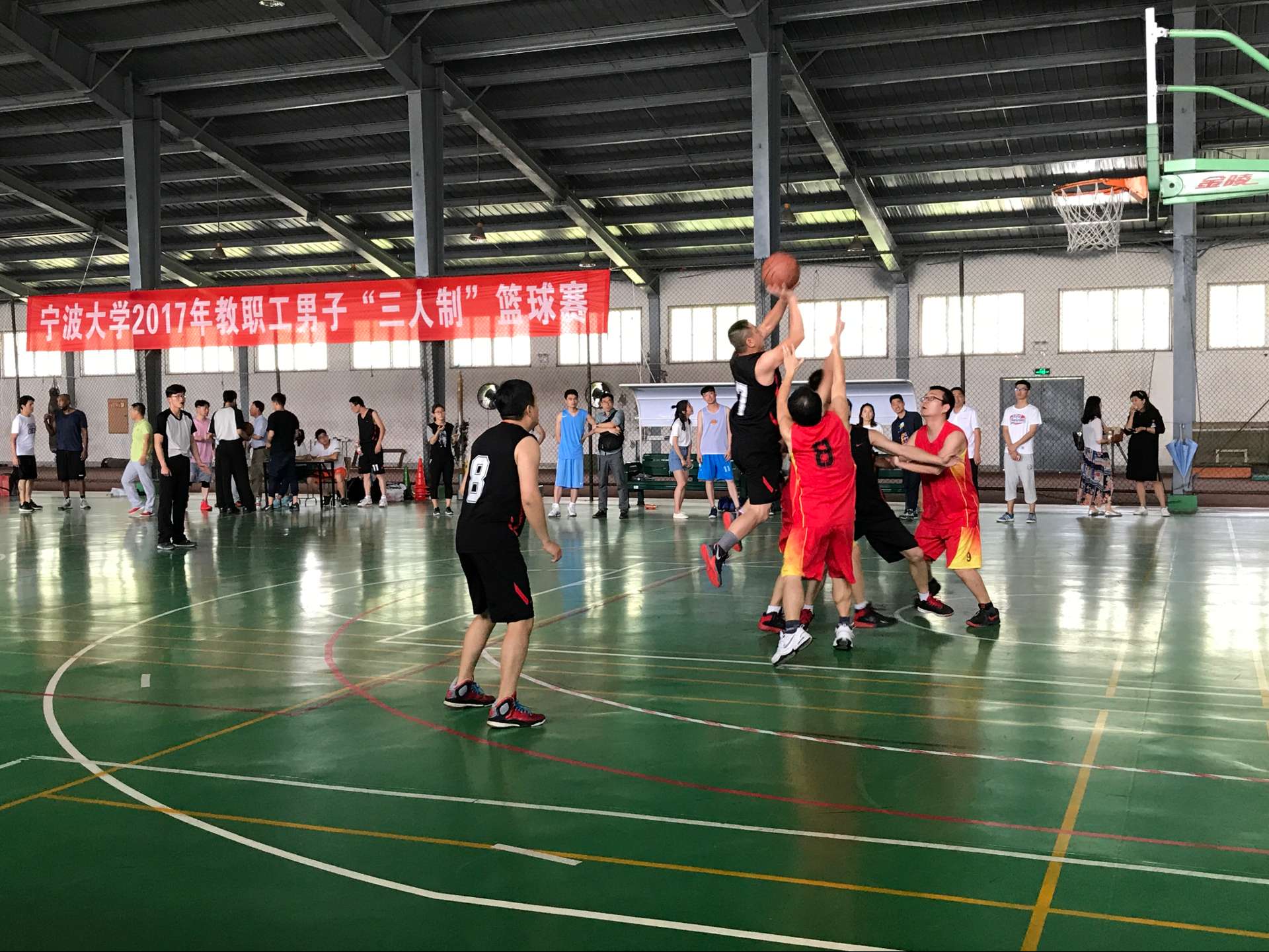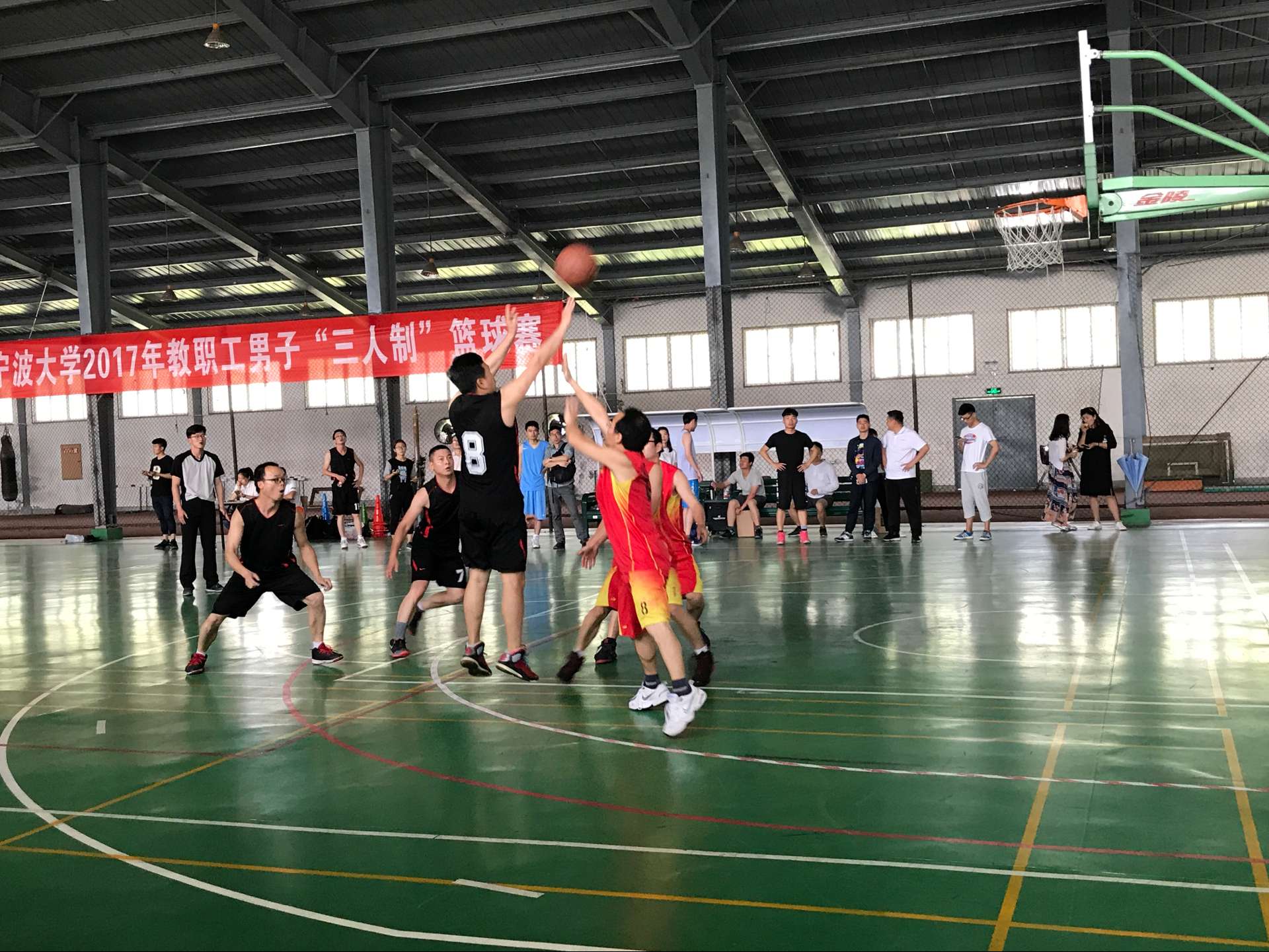 据悉,今年我校“三人制”篮球赛自5月9日开赛来,国产探花 由初汉增、齐昌广、林存刚、张攀、毛华、李加林等6位老师组成的代表队,积极备战,发挥出色,分别战胜了商学院、机关五、信息学院、法学院、机关二5支代表队。之后,他们将在明日开始的淘汰赛中,迎战教师教育学院代表队。希望他们继续过关斩将,勇夺佳绩。