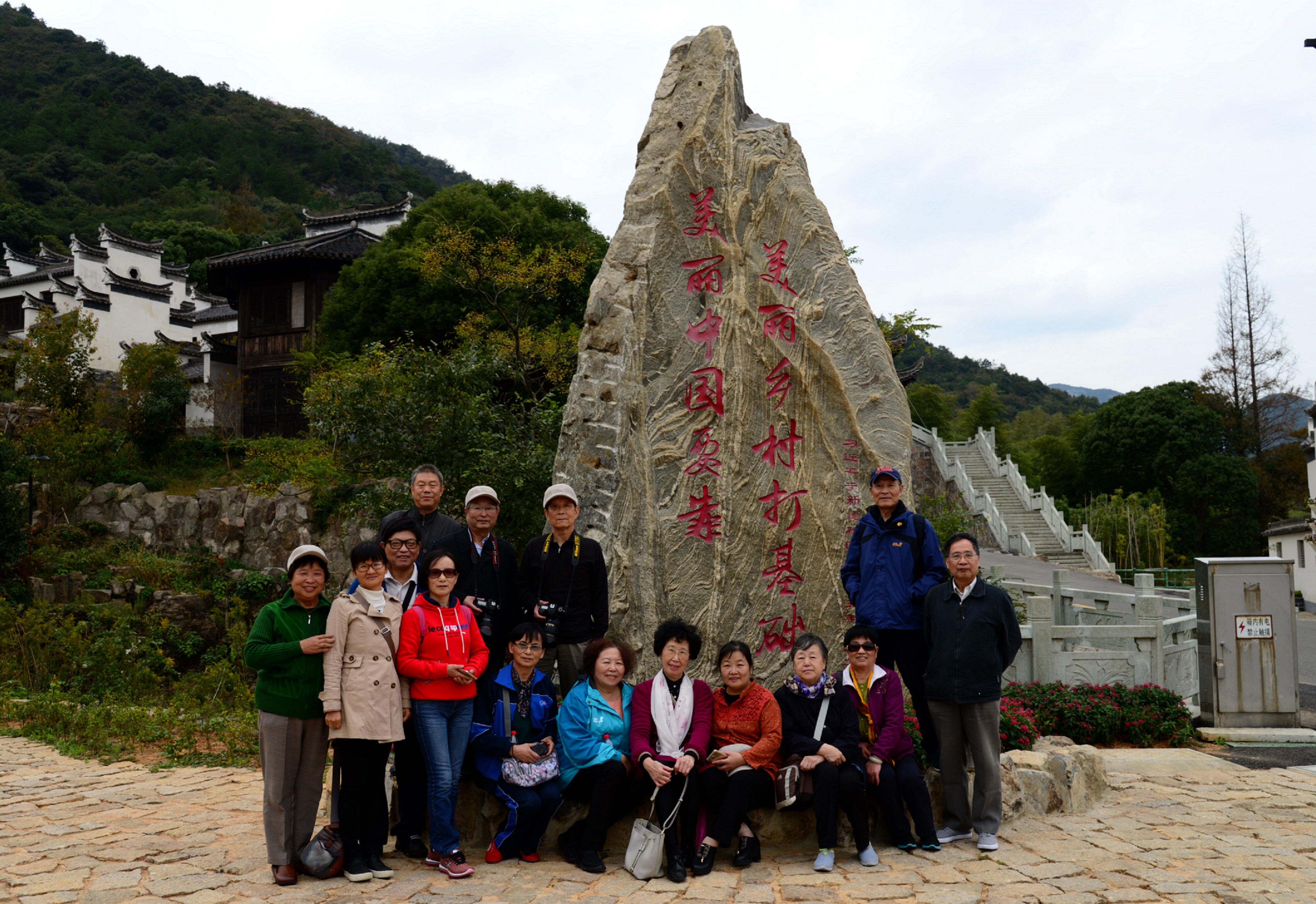路上,欢聚在一起的老教师拉家常、论时事、谈心得,其乐融融。第一天上午大家参观了美丽新乡村代表南洞艺谷,新时代农村快速的发展变化让大家深切地感受到国家的好政策。第二天大家游览了舟山册子岛月亮湾,美丽的海边景观让大家纷纷拿起相机拍摄一路上的美景。