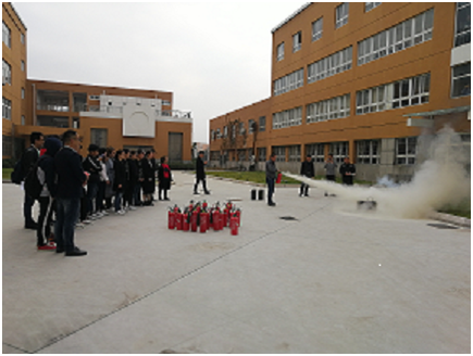 随后,保卫处消防负责人讲解了有关火灾现场的应急处置方案,灭火器的使用原理以及相关的注意事项。并亲自演练了灭火器的使用方法;在认真听讲及观摩后,师生们亲自体验了现场灭火的过程,面对熊熊燃烧的火堆,学生们表现的十分沉着,熟练地按照灭火的步骤和方法,将汽油燃起的浓烟大火成功的迅速扑灭,做到了冷静沉着的面对突发现象,成功快速的扑灭大火的消防标准,