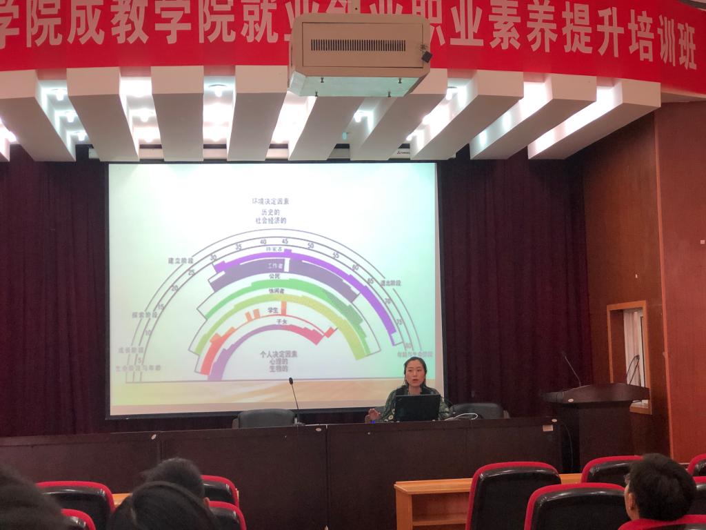 本次讲座的主题“理想信念与职业规划”包括两方面的内容,华颖老师首先提出问题“我是谁?”、“我从哪里来?”让同学们更加深入的去思考我们的人生目标与信念,并了解规划人生对现阶段的我们来说具有非凡的意义。接着,华颖老师用职业生涯规划彩虹图详细地讲解了人在一生中所扮演的角色及对应消耗的时间和精力,让各位学员有了更清晰的认识。