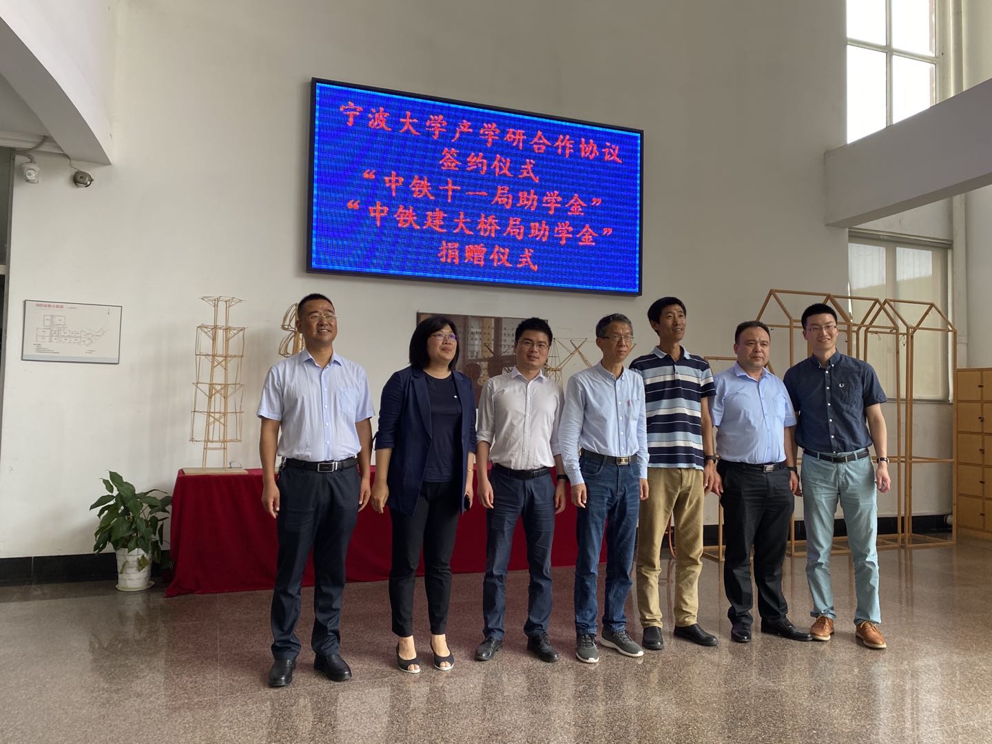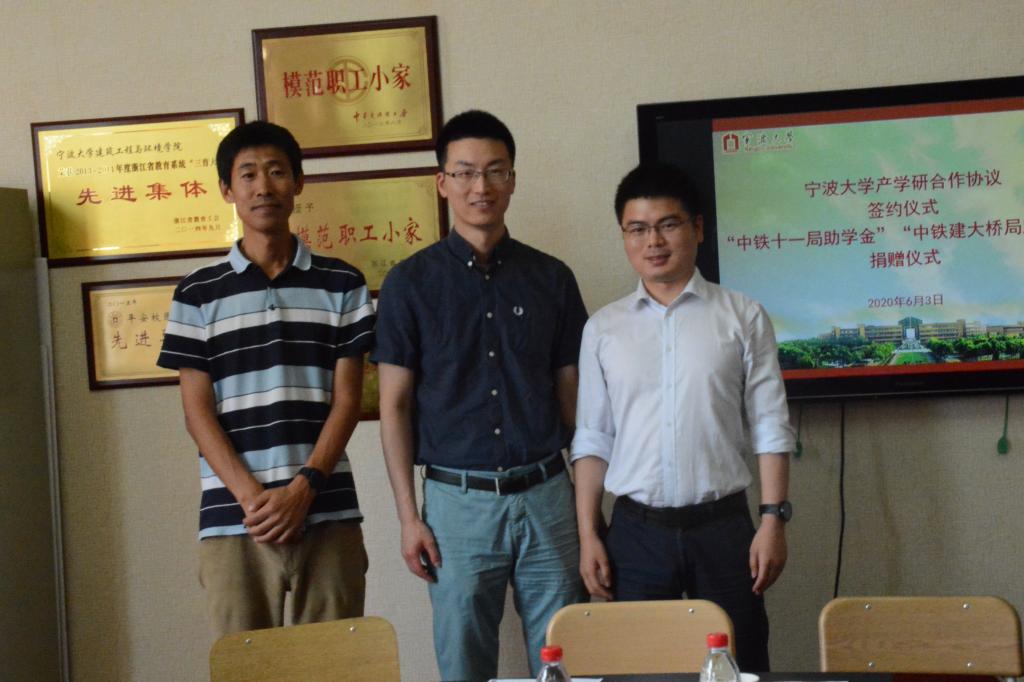 为进一步落实学院人才培养计划,加强校外实习和就业基地建设,提高学生暑期社会实践积极性,6月3日,国产探花 土木与环境工程学院与中铁十一局、中铁建大桥局在学院303进行研合作协议签约仪式和助学金捐赠仪式。中铁十一局集团有限公司宁波分公司总经理彭百达、中铁十一局集团北仑区黄山路隧道项目经理秦学军、中铁建大桥局浙江区域副总经理胡春来、中铁建大桥局宁波区域经理王树良,土木与环境工程学院院长 郑荣跃、学院党委副书记汪丹、副院长章子华、学工办主任 吴燕丽、创新创业办主任王朝东出席了此次签约和捐赠仪式。