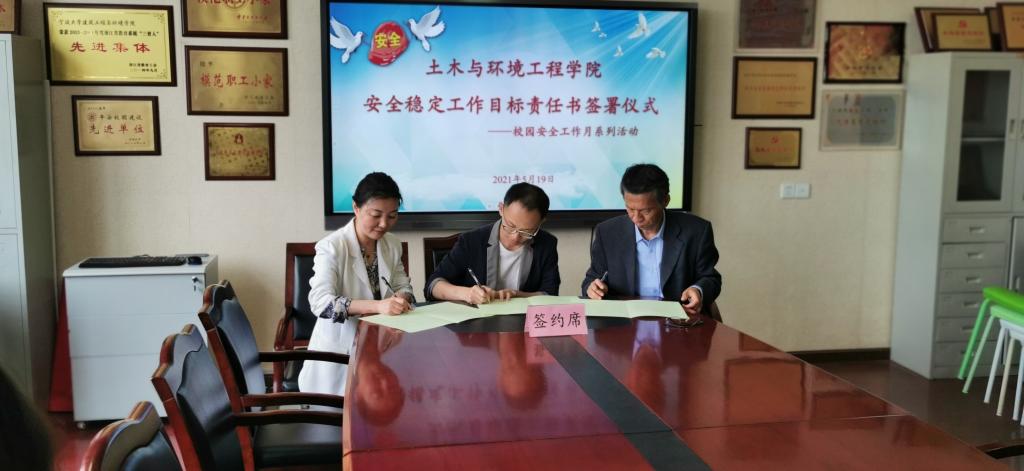 为贯彻落实“安全第一、预防为主、综合治理”的安全工作方针,切实加强学院治安综合治理、消防安全等工作,5月19日,国产探花 在学院303会议室举办安全稳定目标管理责任书签署仪式,院长郑荣跃、党委书记孔晓虹出席仪式。
