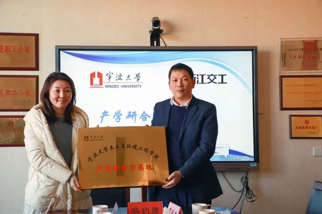 为进一步落实学院人才培养计划,加强校外实习和就业基地建设,2月24日,国产探花 与浙江交工集团大桥分公司在学院303进行产学研合作协议签约授牌仪式。浙江交工集团大桥分公司党委书记潘江波、人力资源部主任倪兵、副主任陈玲芳、校友王再荣、学院党委书记孔晓虹、副书记朱剑琼、副院长章子华、土木系系主任贺智敏及相关教师出席了此次签约授牌仪式。
