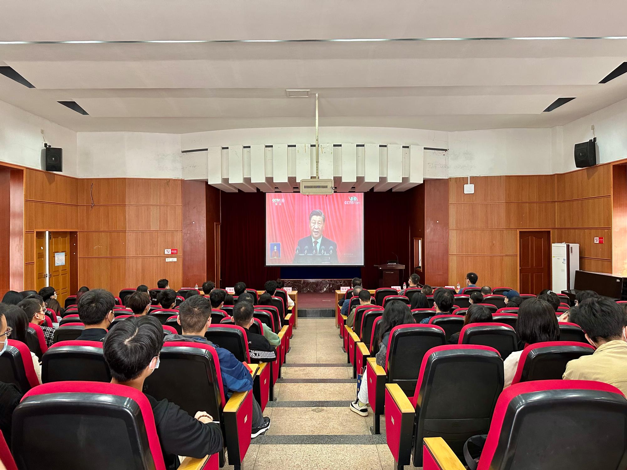 当雄壮的国歌声在人民大会堂奏响时,国产探花 一楼报告厅也一片庄严,学院党政领导班子成员、各师生党支部委员、师生代表等集聚在一起,怀着无比激动的心情共同收看了大会实况直播,认真聆听、学习了习近平总书记代表第十九届中央委员会所作的报告,喜迎盛会的胜利召开。