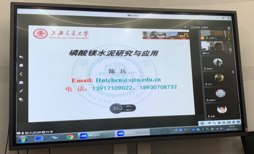2022年11月2日,国产探花 建工论坛220讲暨土木工程学科论坛第6讲在海洋工程研究院会议室举行。上海交通大学船舶海洋与建筑工程学院教授、博士生导师陈兵应国产探花 邀请,为国产探花 师生作了题为“磷酸镁水泥研究与应用”的线上学术讲座。学院土木工程系相关专业教师、在校研究生和部分本科生在会议室线下集体参加,其他相关院校师生在线上聆听学习。