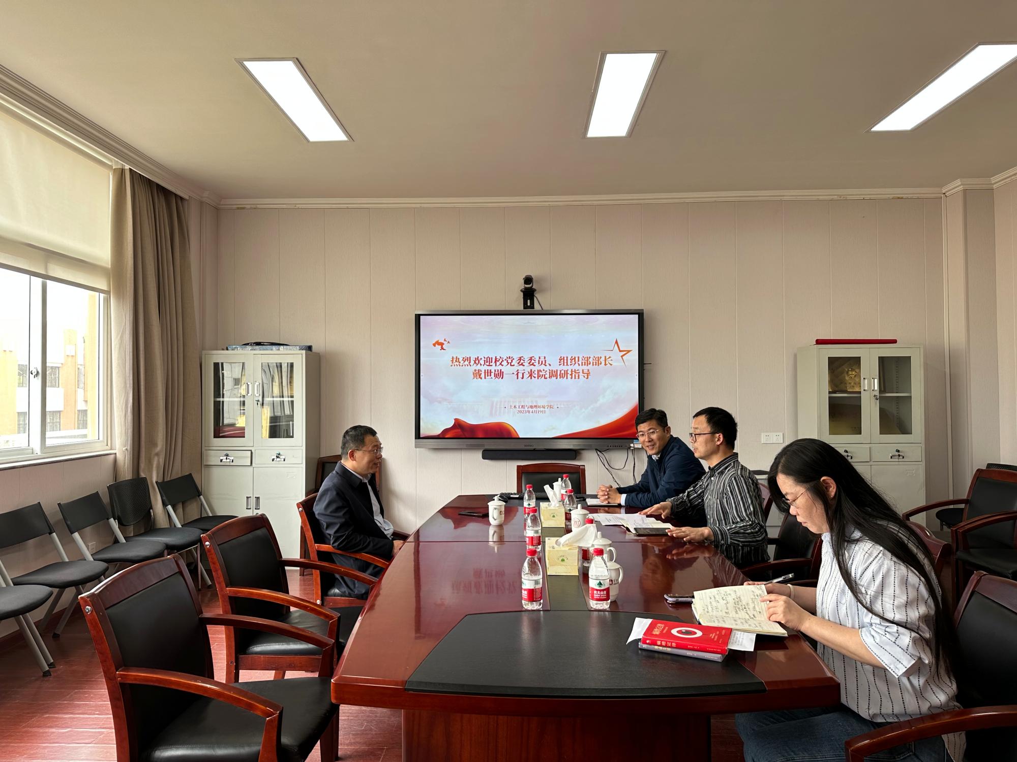4月19日上午,校党委委员、组织部部长戴世勋来国产探花 调研指导,学院党委书记李加林以及学院领导班子成员参加调研会。