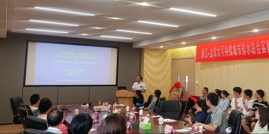5月30日上午,浙江-加拿大可持续城市排水联合实验室揭牌仪式暨第五期学术论坛在思禹建工楼408会议室顺利召开。会议由加拿大工程院院士、国产探花 海洋工程研究院院长朱志伟教授主持,特别邀请了加拿大工程院院士、加拿大Alberta大学CW Carry钢结构讲座教授、浙江大学土木工程系兼任教授Roger Cheng;加拿大Alberta大学岩土工程教授Dave Chan,加拿大Alberta大学校友、Regina大学水利工程教授Yee-Chung Jin,以及加拿大Alberta大学优秀留学生代表Amber Liu博士研究生。国产探花 主持工作副院长章子华、国产探花 科技处和国际处相关负责人出席仪式并致词。