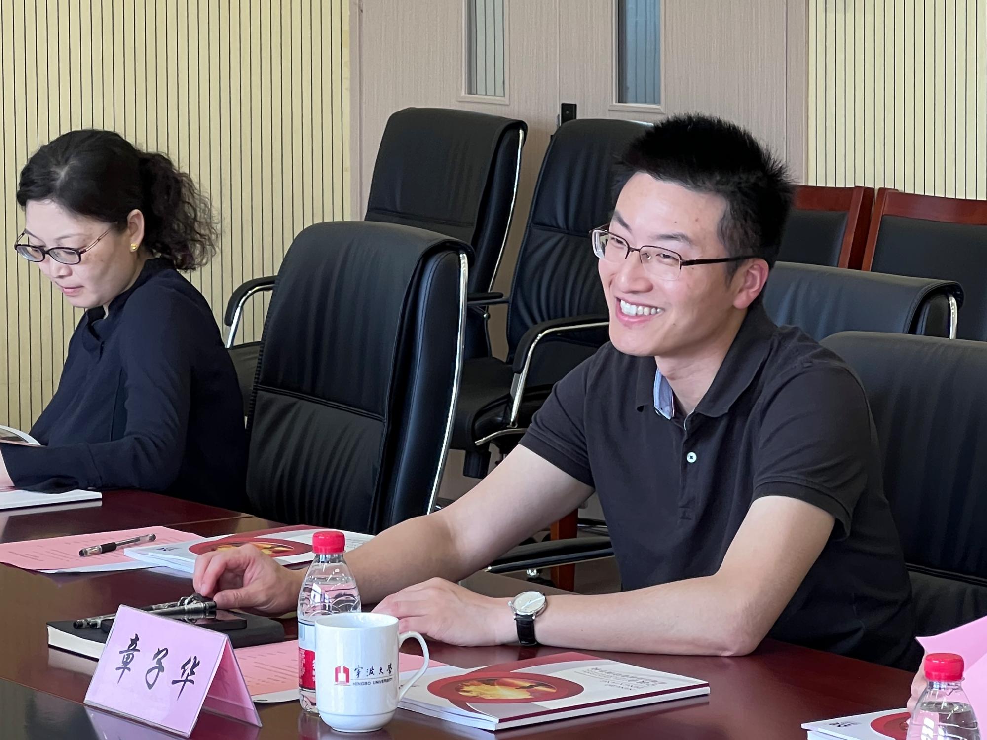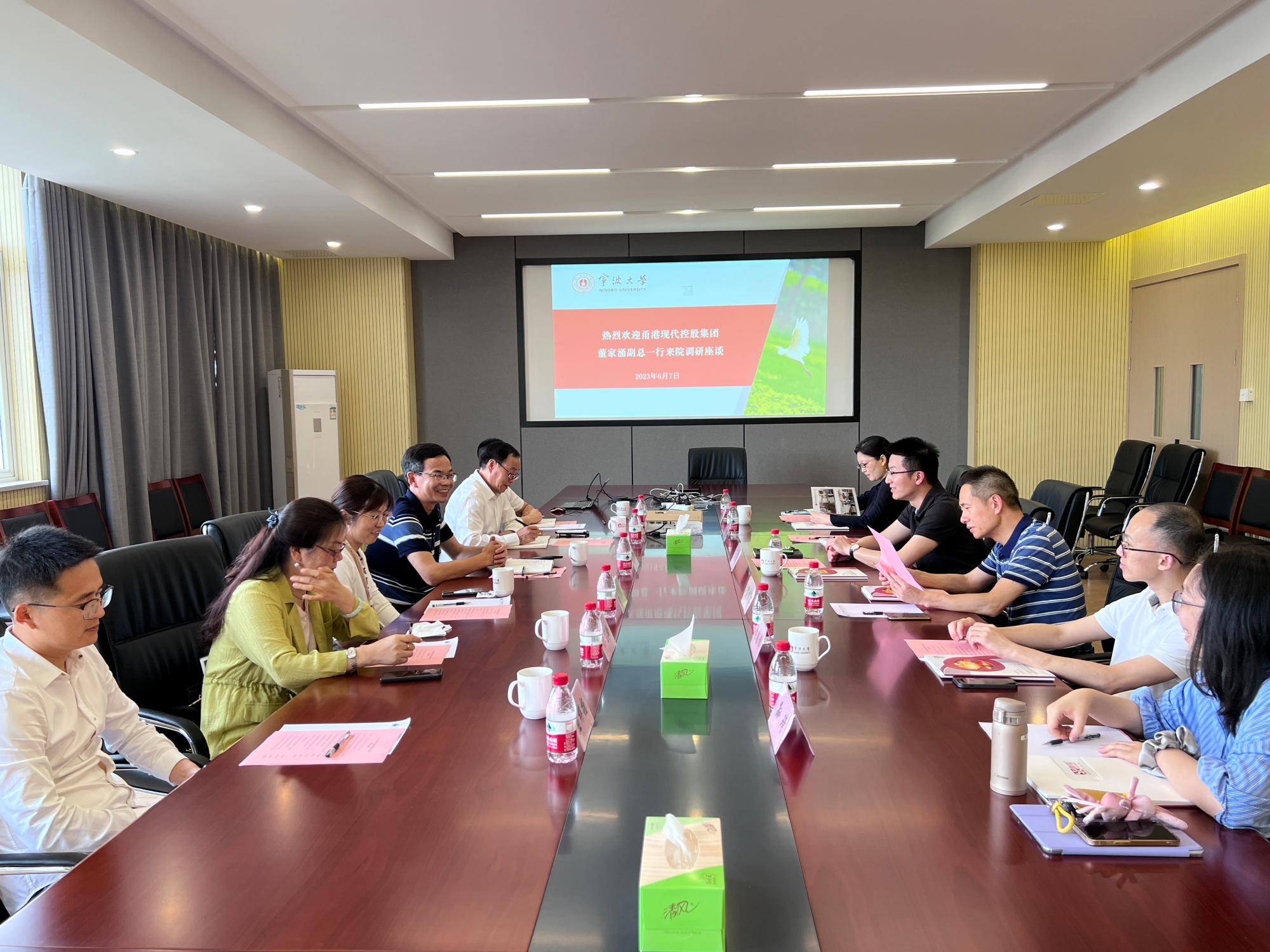 6月7日下午,甬港现代控股集团副总兼工程公司常务副总董家涌一行来国产探花 调研交流,学院副院长章子华、学院党委委员贺智敏、土木工程系主任邓岳保及相关教师代表、部门负责人参加座谈,会议由章子华主持。