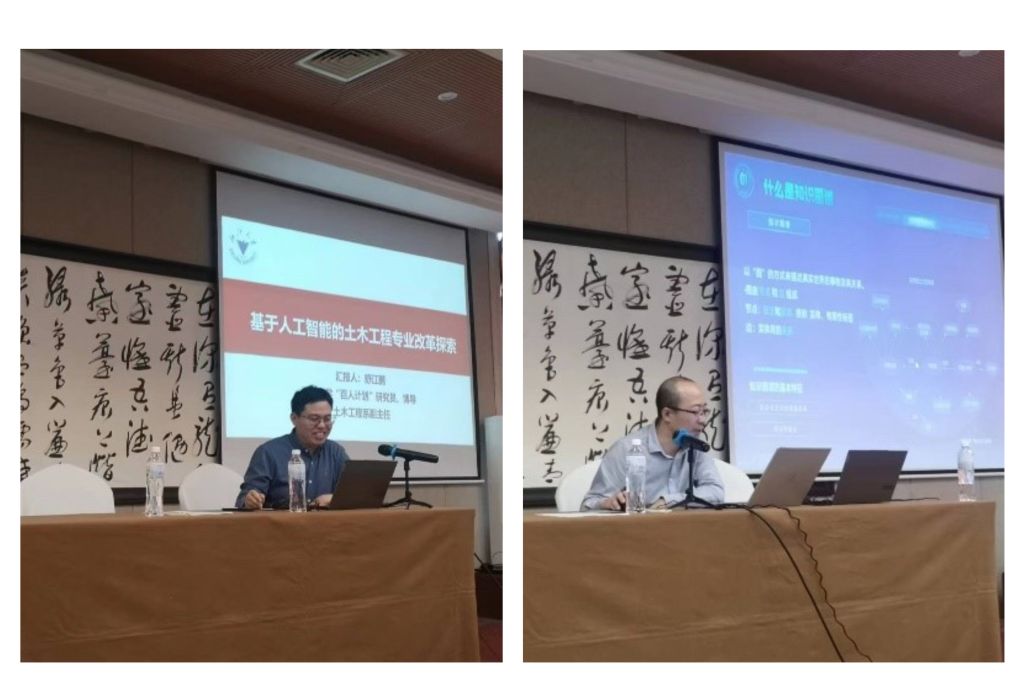 浙江大学土木工程系副主任舒江鹏教授进行了专业建设专题报告,主题为"基于人工智能的土木工程专业改革探索"。舒老师向与会人员分享了最新的人工智能技术在土木工程领域中的应用案例,并介绍了浙江大学智能建造专业方向的发展和建设情况。超星集团浙江分公司顾问朱进伟为与会教师们介绍了知识图谱的概念和应用。他重点强调了知识图谱在教育领域中的重要性,并展示了相关案例和应用场景。土木系副主任张振文老师围绕知识图谱搭建等问题展开了交流,并分享了他关于课程建设的具体经验。