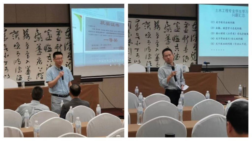 会议最后一个环节是教学教研交流研讨。土木工程系副主任汪炳老师首先围绕教研教改和教学竞赛主题进行报告,他分享了教研项目申请方式和教学竞赛参与办法等,与会老师随后展开了积极交流讨论。