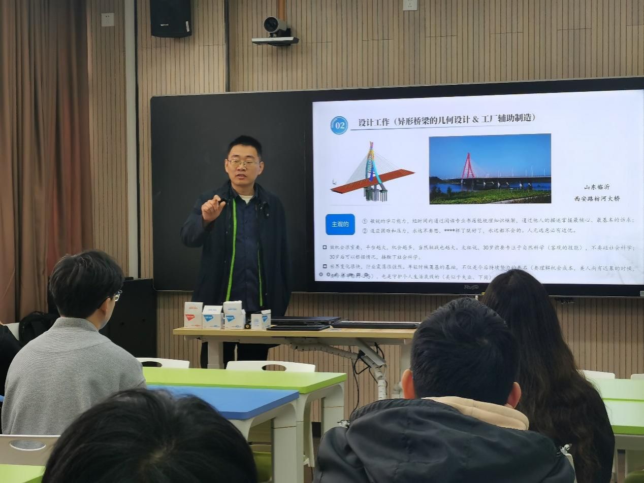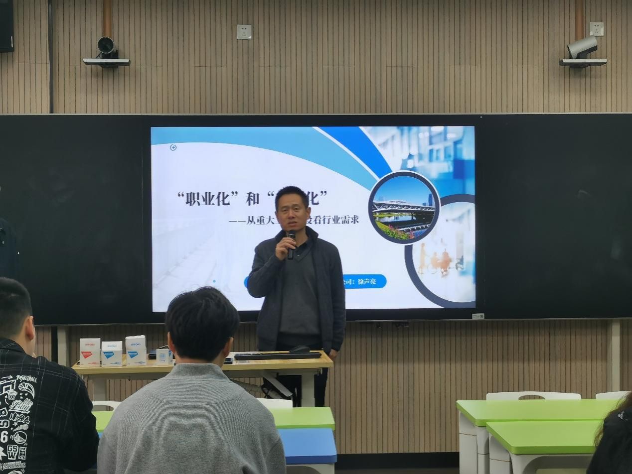 紧接着,徐声亮总工为同学们带来了题为“‘职业化’和‘市场化’——从重大工程建设看行业需求”的精彩报告。他结合自身丰富的工程实践经验,详细解读了理论与实践的结合之道,为同学们展示了土木工程行业的广阔前景和职业发展的可能性。