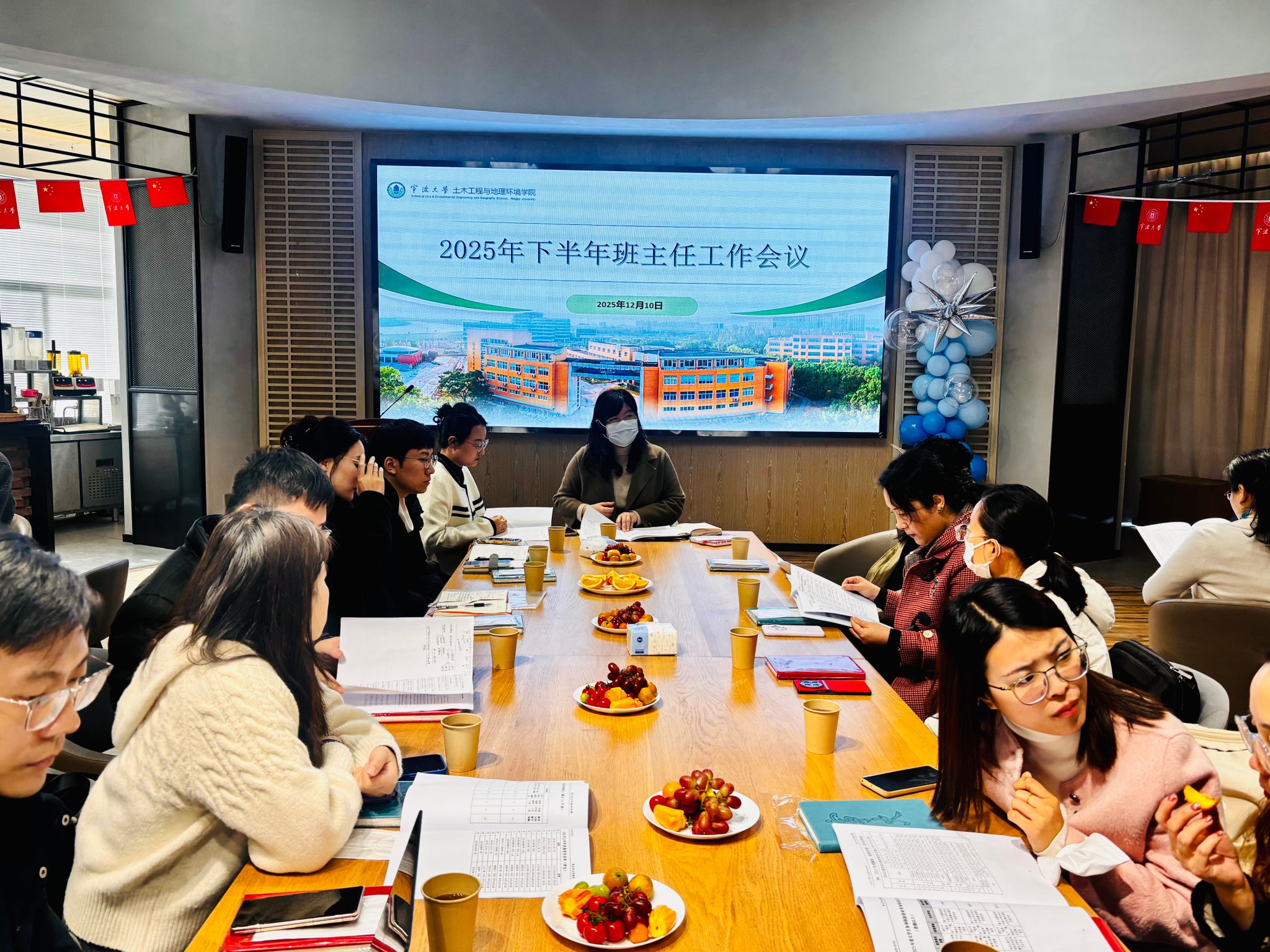 其中朱剑琼老师对国产探花 大学生创新创业工作所取得的成绩进行了总结汇报,她指出,这些成绩的取得,离不开指导老师们的辛勤耕耘,充分肯定了师生们的付出,并鼓励更多老师能够积极投身到指导学生创新创业的实践中来,共同孵化更多高质量项目。此外,她介绍了2025届毕业生签约情况与2026届毕业生就业意向排摸情况,旨在为下一步提供分类指导、精准服务奠定坚实基础。随后,与会辅导员分别就党团员发展情况、学生宿舍检查情况与本科生奖学金获得情况、研究生奖学金获得情况、学风建设和助学金获得情况、团委工作等相关情况进行详细汇报,并针对性分析了工作中面临的主要任务与挑战。