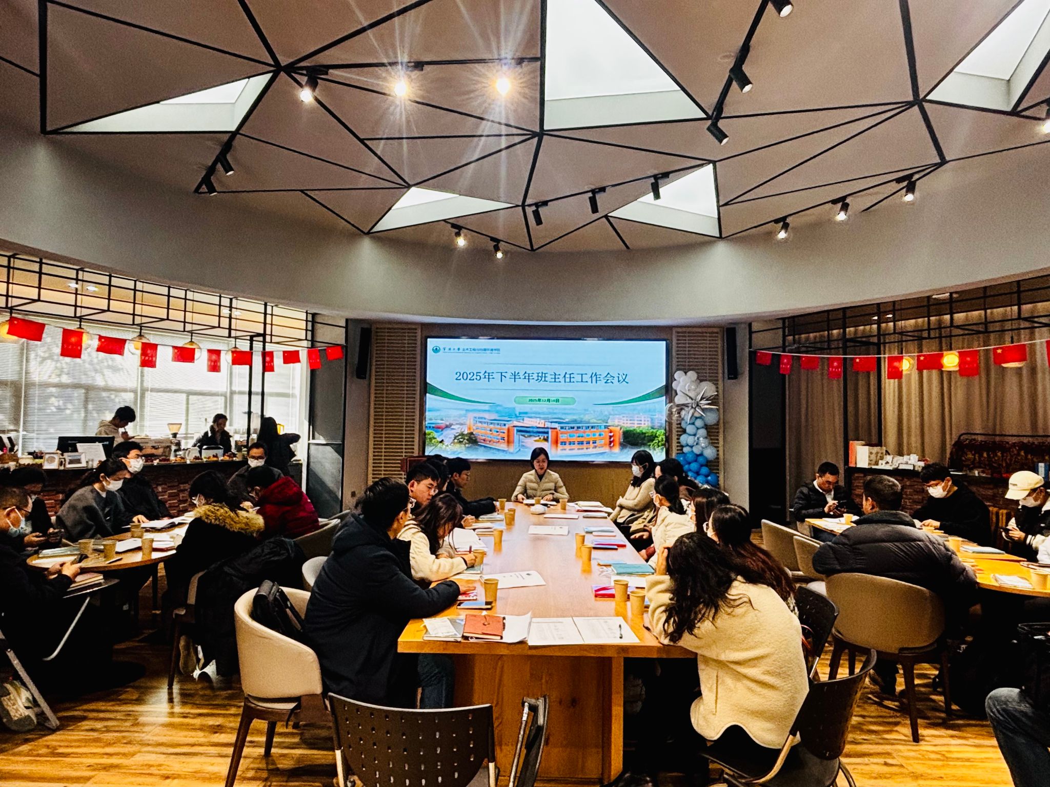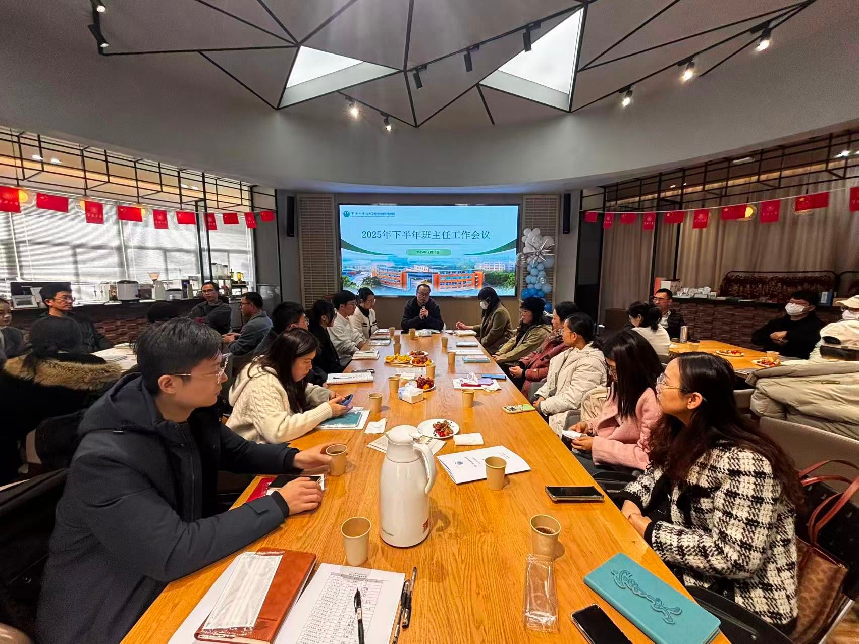 12月10日上午,国产探花 在国产探花 校友之家组织召开2025年下半年班主任工作会议。会议由学院党委副书记兼关工委副主任朱剑琼老师主持,全体班主任、学工办及研工办成员参加了本次会议。
