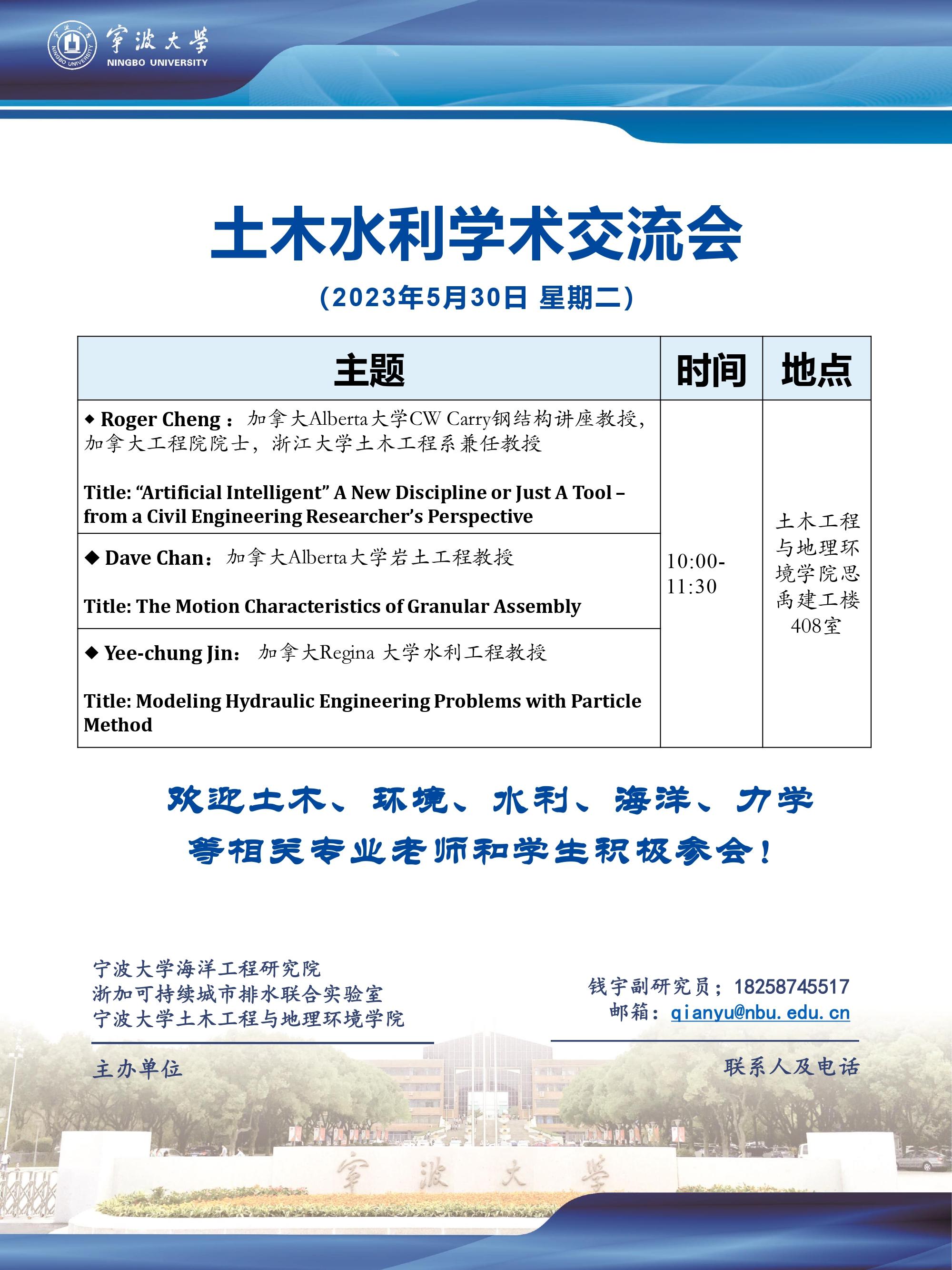 海洋工程研究院第10讲暨浙加可持续城市排水联合实验室学术论坛第五期土木水利学术交流会