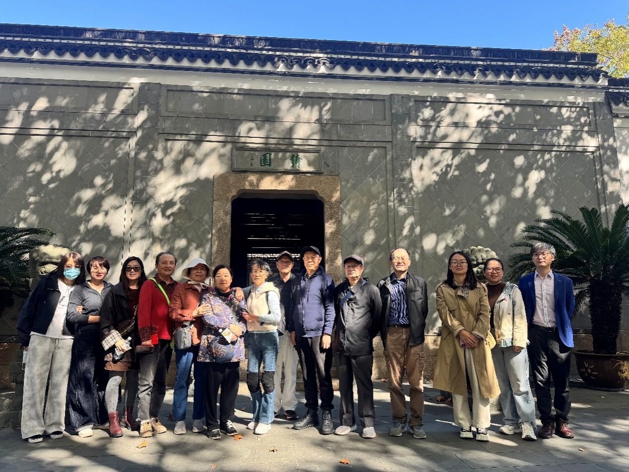 活动当日上午,全体党员与离退休老教师们兴致勃勃,一同乘车前往本次活动的首站——被誉为“浙中第一园”的海盐绮园。园内亭台楼阁,曲径通幽,秋色如画。活动中,青年党员们悉心陪伴在老教师身旁,一边欣赏江南园林的精致典雅,一边与他们亲切交流,关切地询问他们的身体和生活状况。老教师们也结合自身经历,向青年党员讲述了学校发展历程中的奋斗故事与人生感悟,分享了他们在教学、科研和管理岗位上的宝贵经验。