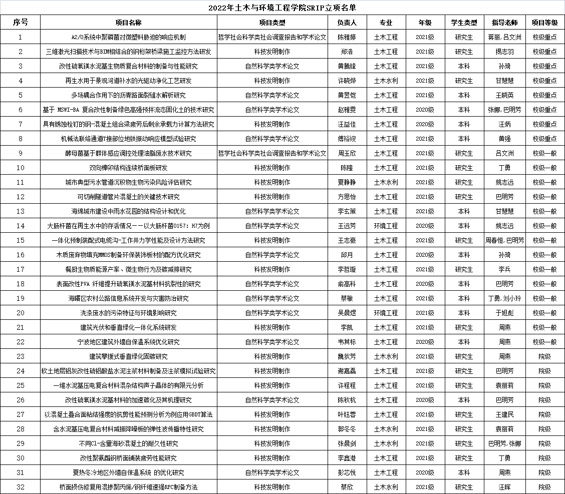 经学生申报,学院专家评审,学院审核,以下32项学生科研项目(srip)予以立项公示,其中校级重点8项、校级一般14项、院级10项,公示期为3天,公示期内有任何疑问可联系王朝东老师,联系电话578527,邮箱:[email protected].
