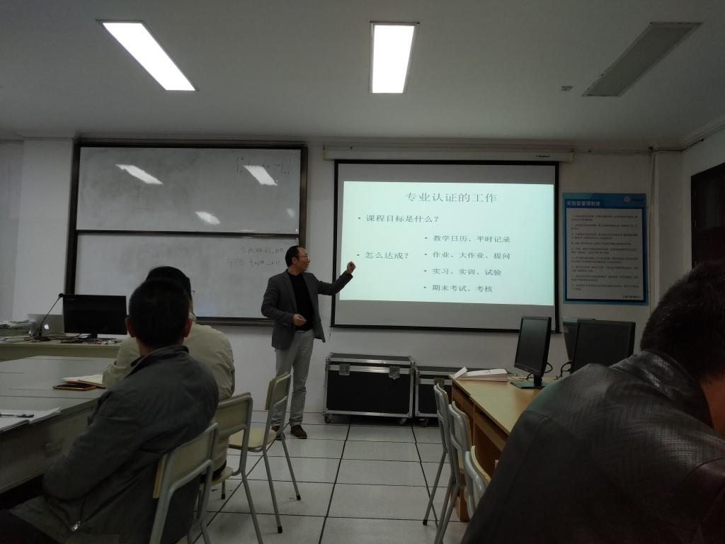 2018年12月5日下午,土木系全体教职工会议在建工学院A区207召开,章子华系主任从总体上介绍了2018年土木工程专业认证自评报告工作安排计划,邓岳保副系主任具体介绍了认证工作中每位任课教师完成课程目标的方式以及课程达成度计算的方法。并对每位任课教师的下一阶段工作任务进行了布置。
