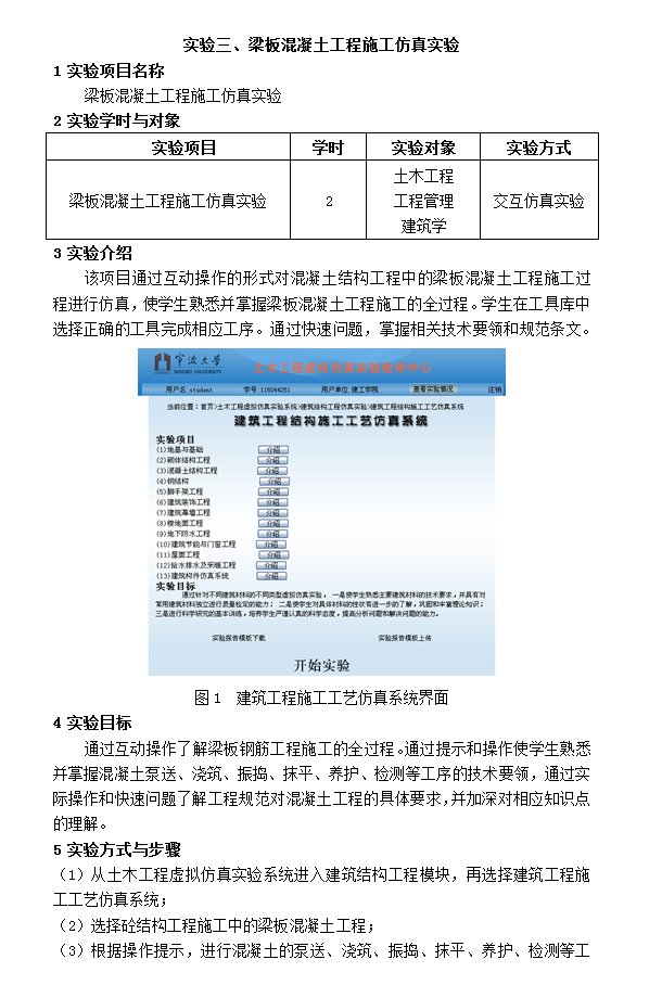 梁板混凝土工程施工仿真实验