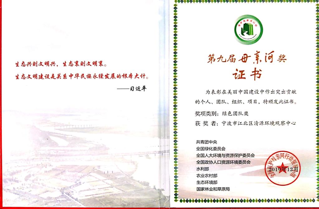 2019年团中央“母亲河”--绿色团队奖