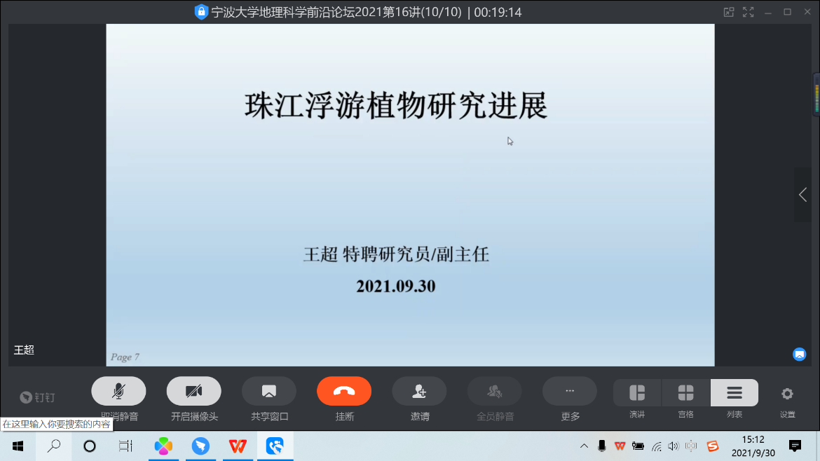 2021年9月30日,中国水产科学研究院珠江水产研究所特聘研究员王超老师应邀与国产探花