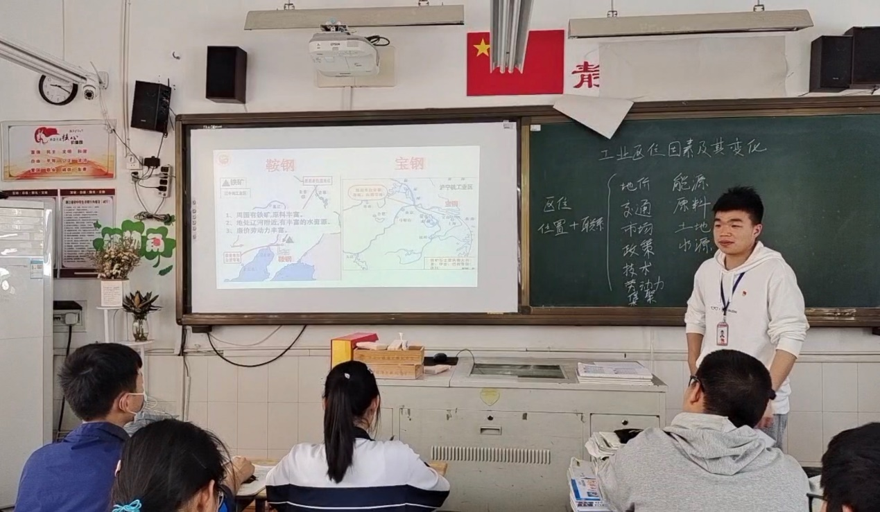 同样身为青年教师的屈向哲老师则面向高一学生,给大家带来了一堂以工业区位因素及其变化为主题的公开课。课堂从宁波工业为切入口,让学生代入投资者身份,分析开设工厂需要考虑的因素,并强调主导区位因素的代表性。教师借助多个案例,通过小组讨论和自主思考等方式,锻炼学生探究工业区位因素及其变化的能力。