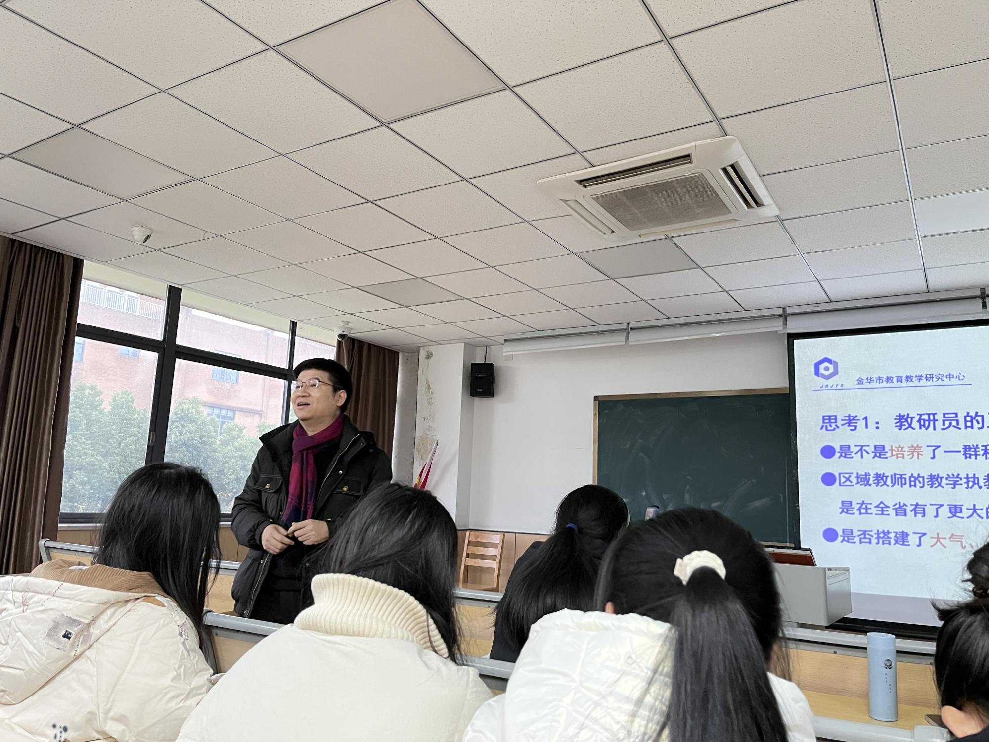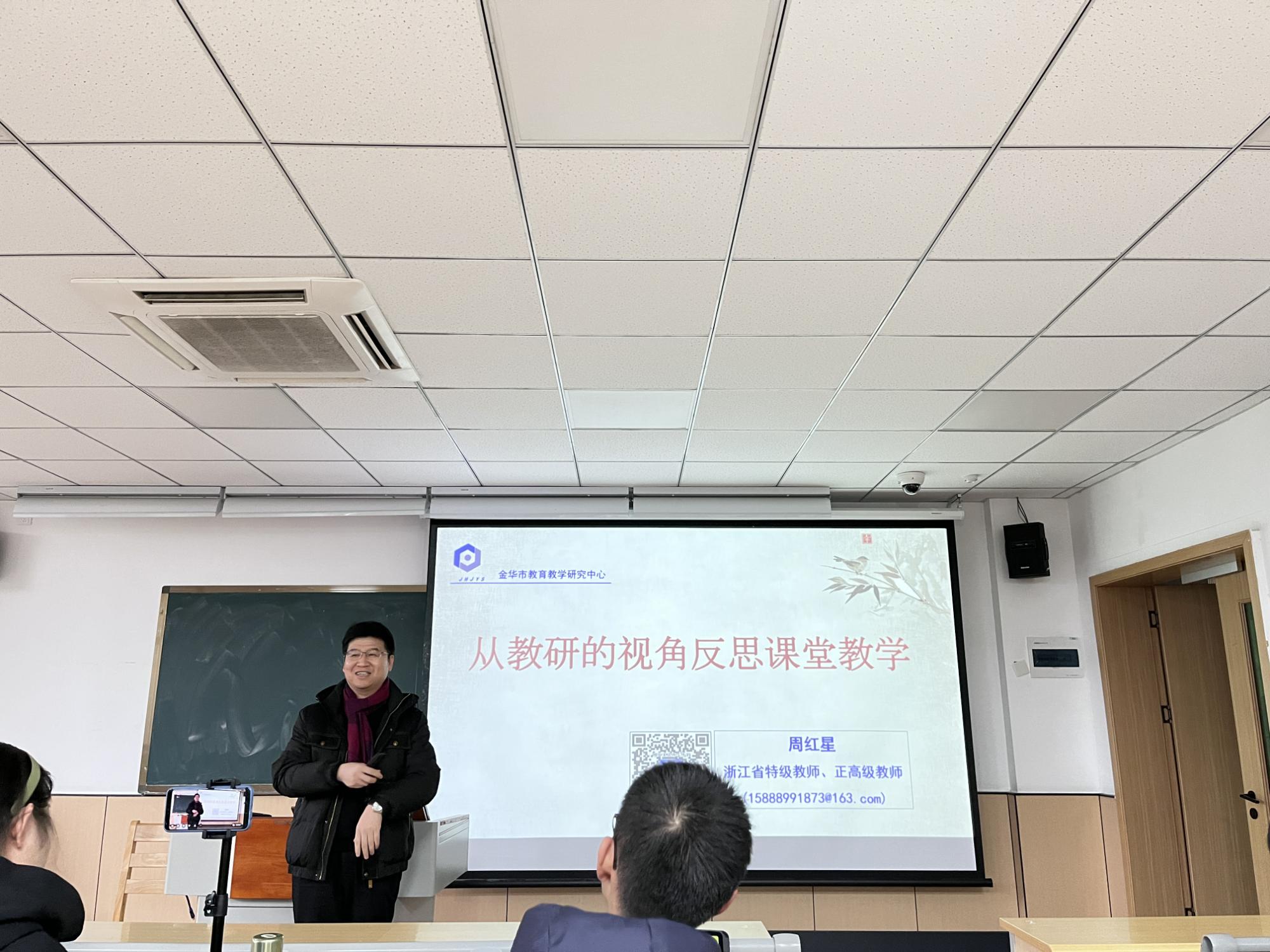 当日下午三点,浙江省金华市教育局教研室主任、书记,正高级教师,浙江省特级教师,浙江省名师网络工作室负责人周红星老师结合自身数十年的教研经验,从教学理念、课堂设计创新、发展自身教学特色、素材挖掘,积累、试题命制等角度与师范生们分享了学科教研员的发展之道。
