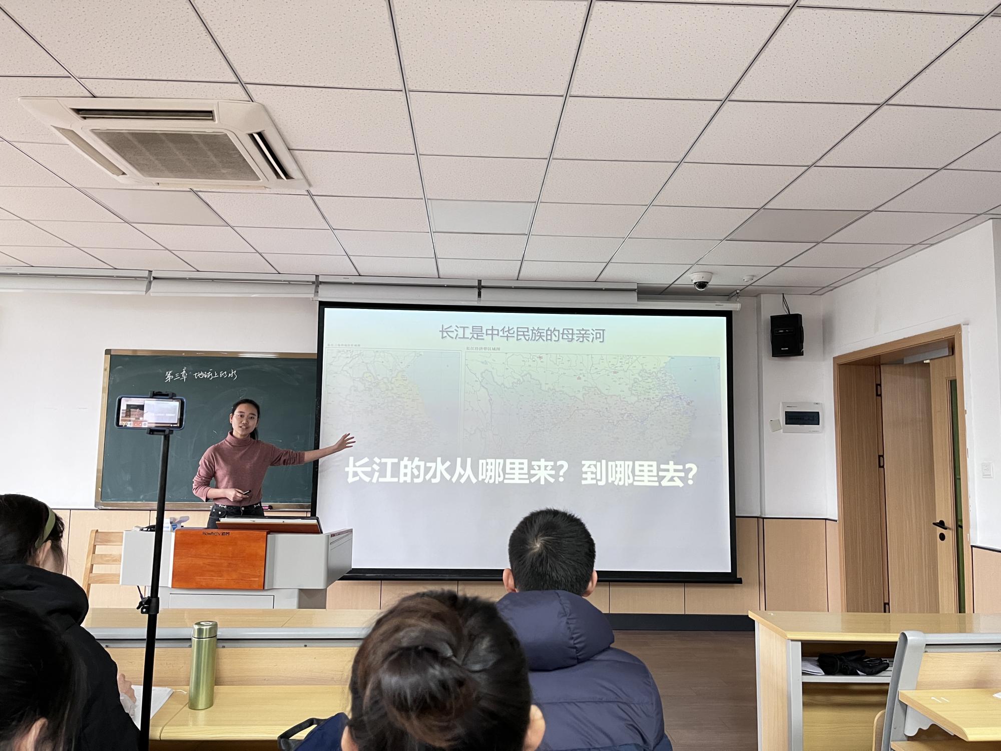来自2019级地理科学(师范)的杨莹同学以“长江一分钟”视频为引,搭建“长江之水从何而来-长江之水流往何处-长江之水为何不会枯竭”的授课主线,讲述了水循环的过程、环节、类型及地理意义,其中不时穿插学生活动,激发学生的探究欲并增强其主体性,结尾又以长江水之殇情引发听课学生对于人地协调的感悟。