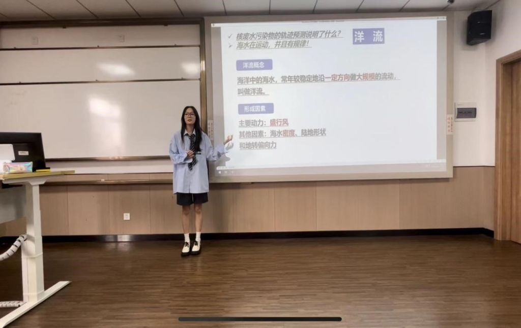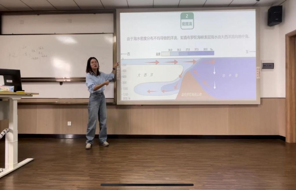 研究生学姐黄紫橙借清华大学对日本核废水的浓度预测引入课程,在课程中重点解读地中海密度流的表层和底层海流特点,结合具体的区域以及相应的材料,逐步引导学生得出相应的结论。