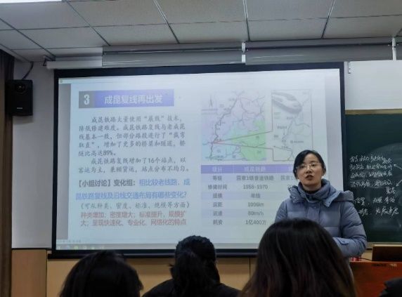 通过“莽莽成昆出峻岭”、“凉山中的扶贫车”、“成昆复线再出发”三个活动,陈老师带领同学们全方位地回顾了交通运输方式的特点及选择、交通运输的布局原则以及交通运输与区域发展之间的相互作用等知识点。整堂课结构紧凑、内容详实、气氛活跃,充分展现了一线地理老师的教学实力,值得同学们认真学习和借鉴。
