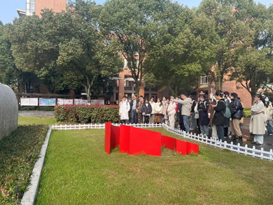活动伊始,龙赛中学杜劲松校长带领同学们参观校园,并对校园文化进行了细致的讲解,特别介绍了“宁波帮”人士对宁波以及龙赛中学的重大帮助和人文关怀。同时,杜校长向宁大师生介绍了龙赛中学的特色“三馆”——学校发展馆、学生发展馆以及教师发展馆。在教师发展馆中,杜校长向各位师范生们传达了“在劳力上劳心,以教人者教己”的谆谆教导。