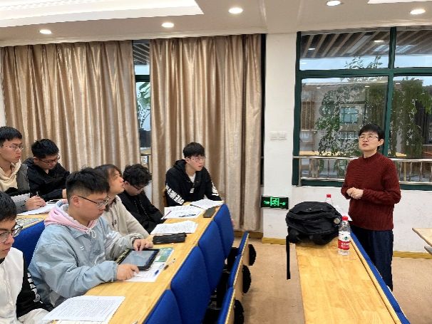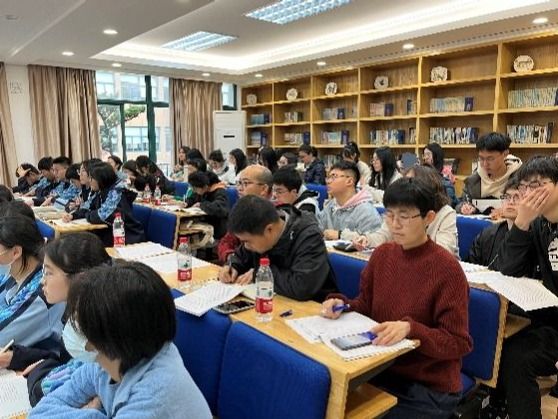 参观完校园,我们回到图书馆一层的阶梯教室,在这里,张力书记向我们介绍了宁波鄞江中学办学情况,其中既有讲到鄞江中学的办学特点与发展历史,也有讲到近几届鄞江中学的选课情况、升学状况以及未来的发展规划。在张老师的介绍中,我们对鄞江中学有了一个更深刻的认识。