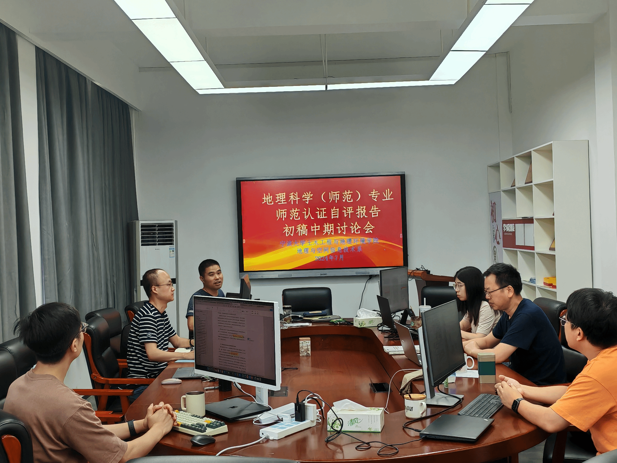 7月3日上午地理系在载物楼405召开师范认证自评报告的中期讨论会,学院相关领导和认证工作小组全体成员参加会议。