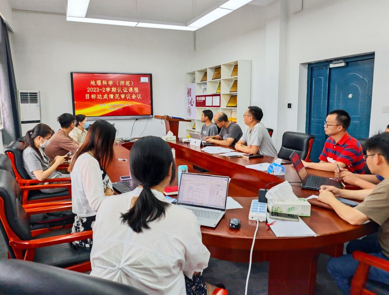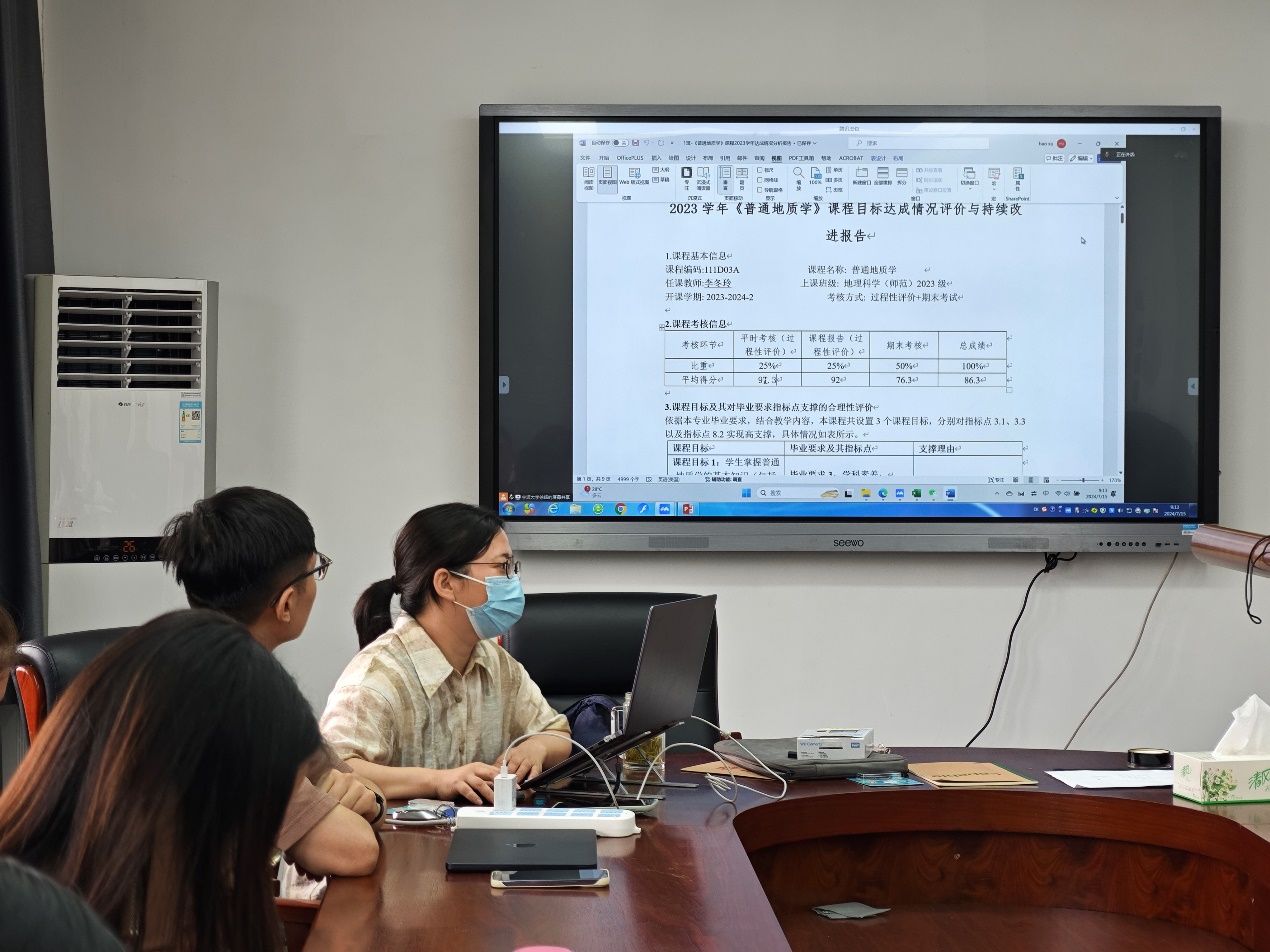 7月15日上午,地理科学(师范)专业在载物楼召开2023-2学期认证课程达成情况审议会,本学期所有认证课程的负责老师汇报了课程目标达成情况,学院执行院长、专业负责人李加林出席。