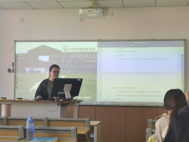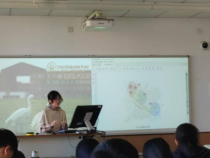 教学1班共分成5小组,围绕东钱湖这一核心区域自由选择要素并进行综合分析。经前期选题、文献阅读、大纲初稿撰写,各组代表分别在课堂上汇报本组的进展。本次课程汇报旨在考核学生小组分工的初步成果和区域分析研究的能力。